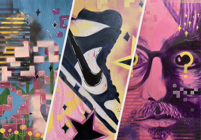 - Learn how to use spray paint and acrylic paint to create a faux digital effect