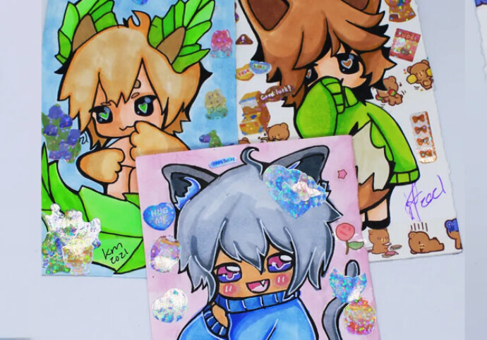 Create your own character design that will be turned into a sticker which can be easily applied to novelty items, bags, shirts etc. Students will develop their own original character from their favorite manga comic. The completed digital drawings will be printed as custom stickers.