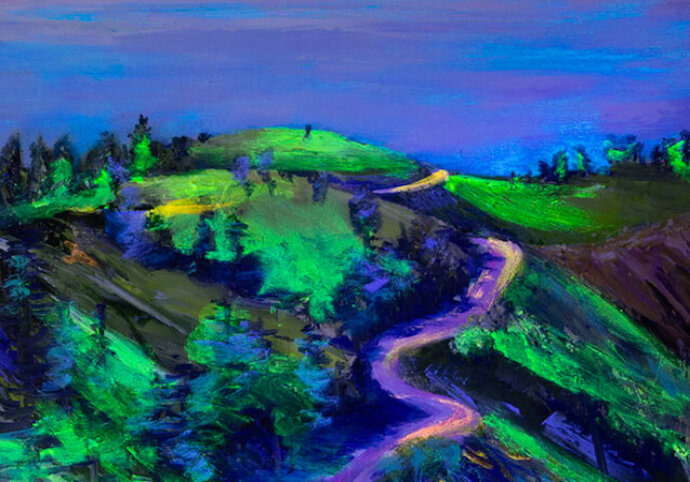 Explore this new method of making paintings using acrylic black light paints to create a fluorescent, glow-in-the-dark artwork! Create an imaginative and fantastical painting that explores color theory and composition with a special effects finish.